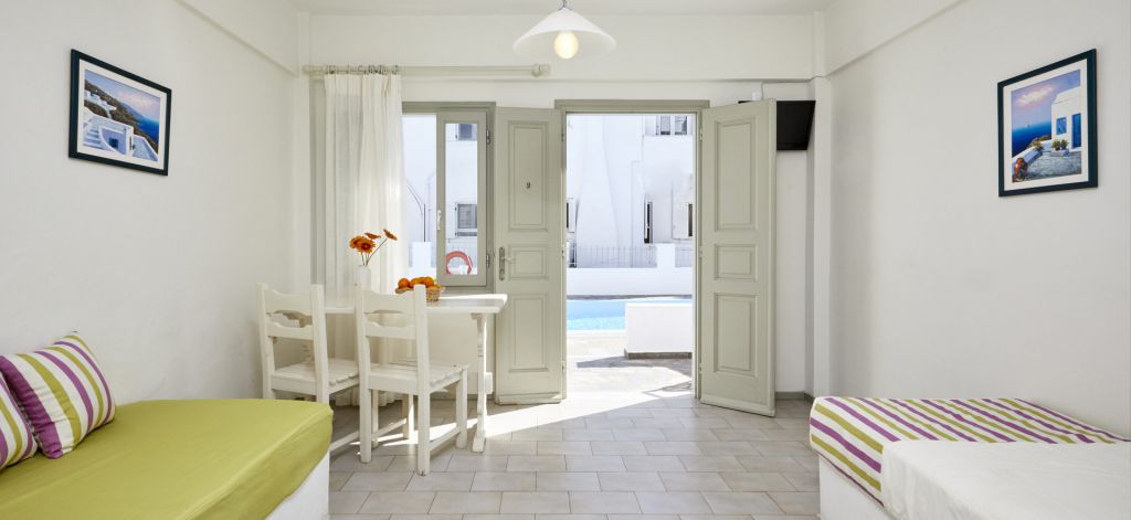 Spacious and inviting, our Family Rooms welcome its guests in a renovated environment, to accommodate your comfortable stay. An ideal choice for families, couples or friends, the rooms feature twin beds or a double, two sofa beds, a modern bathroom and stylish amenities. The rooms open out to a private balcony featuring beautiful vistas of our refined pool area, to take in its serene ambiance.